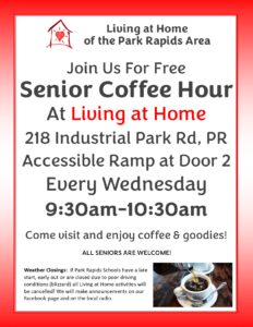 Living at Home of the Park Rapids Area would like to invite you to our free Coffee Hour at our new location in Park Rapids!