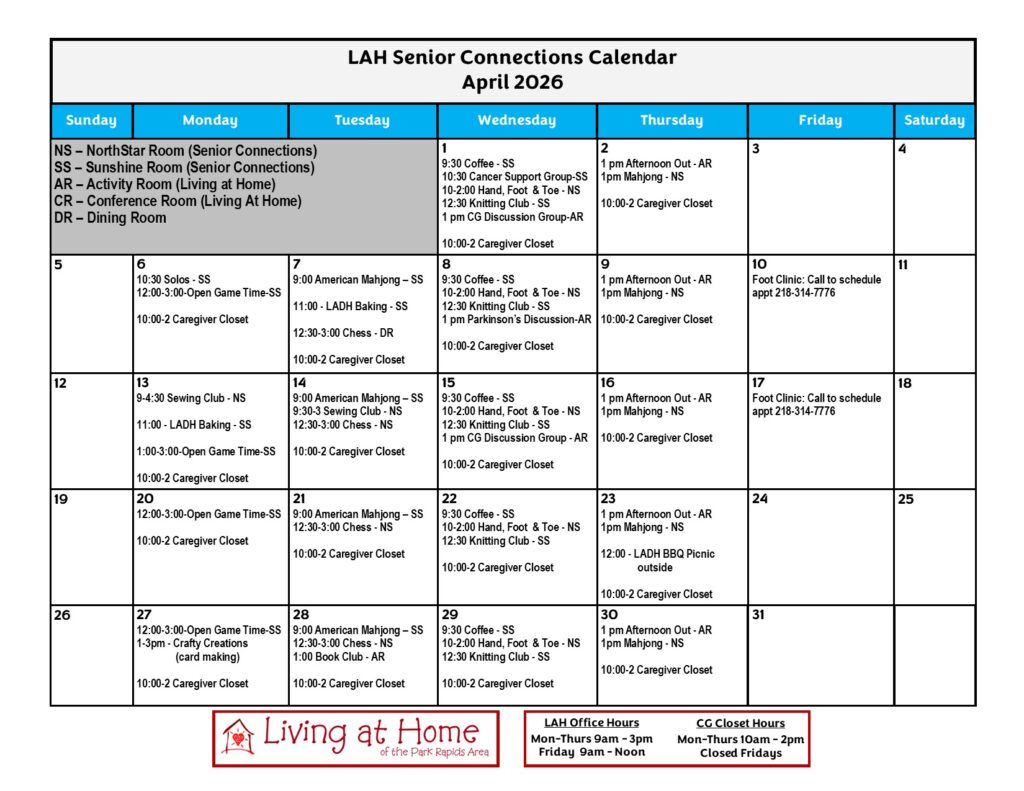 Click the Calendar link below to view the current activities in our Senior Connections Center.